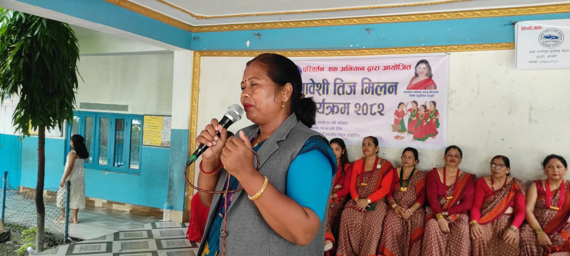 सुनसरी, इटहरी–७ — परिवर्तन एक अभियान, इटहरी–७ को आयोजनामा भव्यरुपमा “समावेशी तीज मिलन कार्यक्रम २०८२” सम्पन्न भएको छ। परिवर्तन एक अभियानको आयोजनामा इटहरीमा सम्पन्न समावेशी तीज मिलन कार्यक्रम २०८२ मा इटहरी–७  वडा भित्र रहेका विभिन्न जातजाति, सङ्घ–संस्था, विद्यालय, कार्यालय तथा भजन–कीर्तन समूहका लगभग ३०० जना महिला, आमा, दिदी–बहिनीहरूको सक्रिय सहभागितामा कार्यक्रम सम्पन्न भएको हो। सहभागी महिलाहरूले आफ्ना संस्कृति झल्कने भेष–भूषा सहित उपस्थित भई तीजको उल्लासमय गीतमा नृत्य गर्दै रमाइलो गरेका थिए।